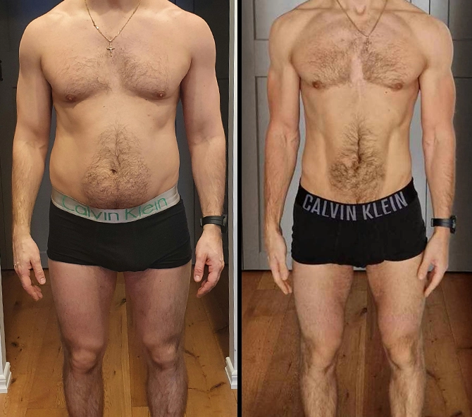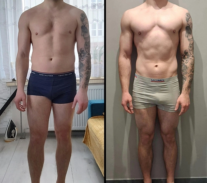 Mimo natłoku pracy oraz związanych z tym dolegliwości bólowych np. w odcinku lędźwiowym nie poddawał się. Plan dietetyczny, treningowy skrojone na potrzeby i możliwości przy zaangażowaniu Mateusza pozwoliły na świetną redukcję która uwidoczniła zalety jego sylwetki.