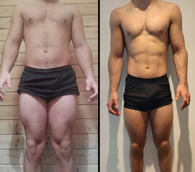 Poprawa nawyków odżywiania, rutyna treningów siłowych dostosowanych do warunków i możliwości przyniosły Rafałowi znakomite rezultaty sylwetkowe. Dzięki rzetelności oraz regularności świetnie przepracował etap redukcyjny przygotowując się do kolejnego.