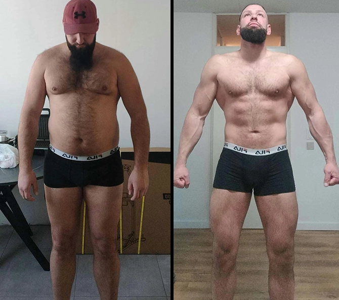 Zaczęliśmy współpracę której celem była poprawa zdrowia, co udało się uzyskać w szybkim czasie. W czasie utraty zbędnych utraty kilogramów Adrian mocno zaangażował się w treningi, poprawił kondycję, dzięki czemu m. in. górskie wyprawy nie stanowią już problemu. Działamy dalej skupiając się na dalszej poprawie, nie tylko sylwetki.