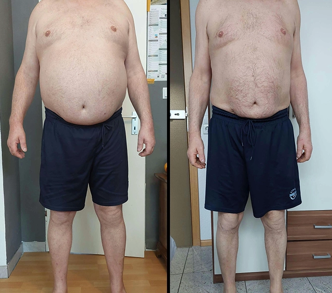 Świetna współpraca dietetyczna która pozwoliła na zmiany nie tylko pod kątem sylwetkowym, ale przede wszystkim zdrowotnym. Tryb pracy nie ułatwiał zadania, ale mimo to Ryszardowi udało się dzięki rewelacyjnej redukcji znacząco zmniejszyć dawki przyjmowanych leków i uregulować parametry zdrowotne.